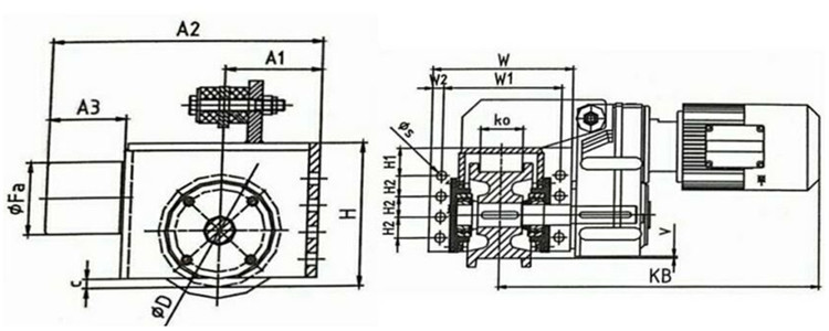 | ØD (mm) | A1 (mm) | A2 (mm) | A3 (mm) | C (mm) | Fa (mm) | W(mm) | W1 (mm) | W2 (mm) | H (mm) | H1 (mm) | H2 (mm) | ØS (mm) | K0 (mm) |