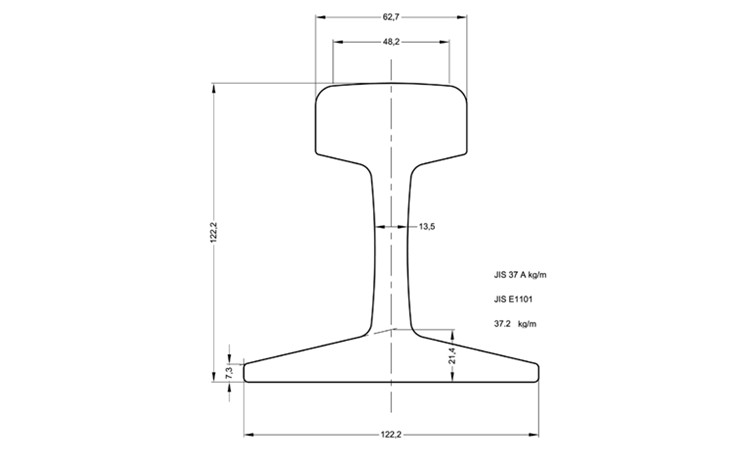 JIS 37A rails are mostly used for large mine tunnels and factory workshop transportation, lifting equipment, and laying of dedicated railway lines.