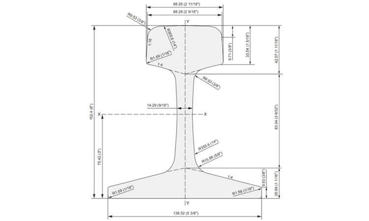 AREMA standard TR50 rail is mainly used as railway track, crane rail, underground mining rail, factory, port, etc.